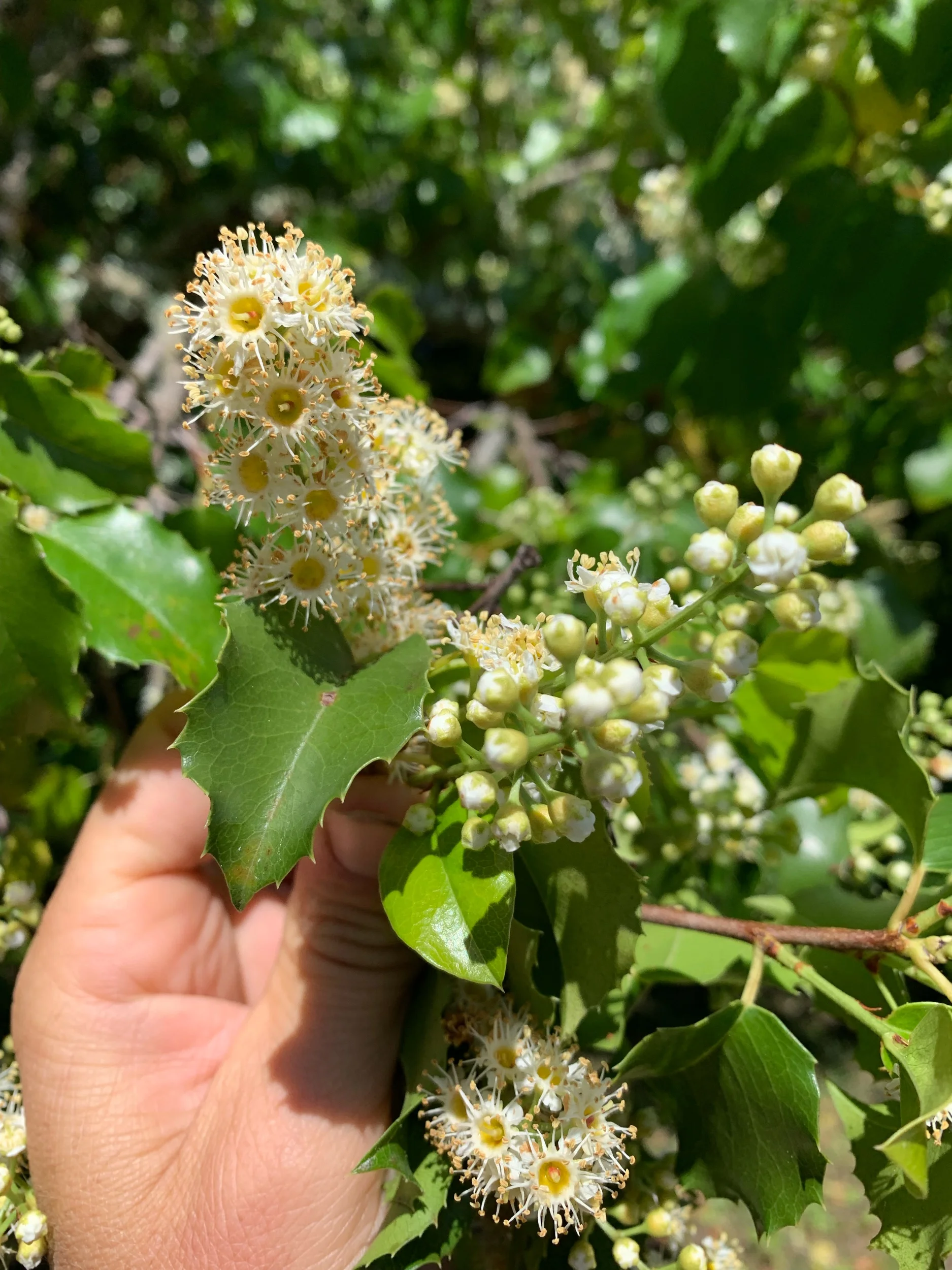 Spencer Woodard May 30, 2019 Prunus illicifolia, flower Spencer Woodard May 30, 2019 Prunus illicifolia flower, late May.
